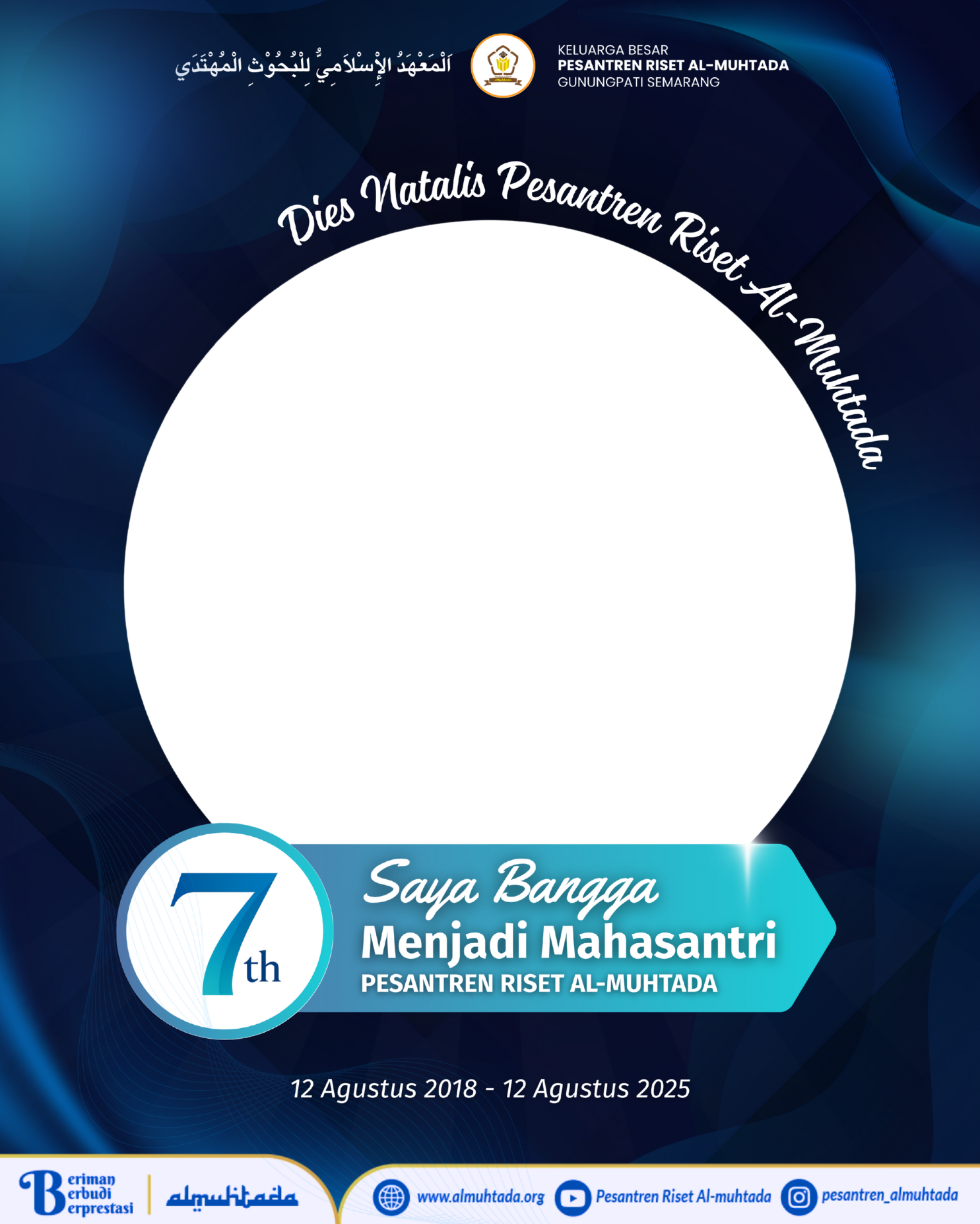 ╔═══════.·:·.✧ ✦✧.·:·.═══════╗ 𝔻𝕀𝔼𝕊 ℕ𝔸𝕋𝔸𝕃𝕀𝕊 ℙ𝔼𝕊𝔸ℕ𝕋ℝ𝔼ℕ ℝ𝕀𝕊𝔼𝕋 𝔸𝕃-𝕄𝕌ℍ𝕋𝔸𝔻𝔸 𝕂𝔼-7 ╚═══════.·:·.✧ ✦✧.·:·.═══════╝ Assalamu’alaikum warahmatullahi wabarakatuh. Saya [Nama] dari Angkatan [] bangga menjadi salah satu bagian dari keluarga besar Pesantren Riset Al-Muhtada. Saya berharap Pesantren Riset Al-Muhtada bisa melahirkan mahasantri yang berprestasi, berakhlakul karimah, dan tentunya menjadi pesantren terdepan yang diminati oleh banyak mahasiswa. Wassalamu’alaikum