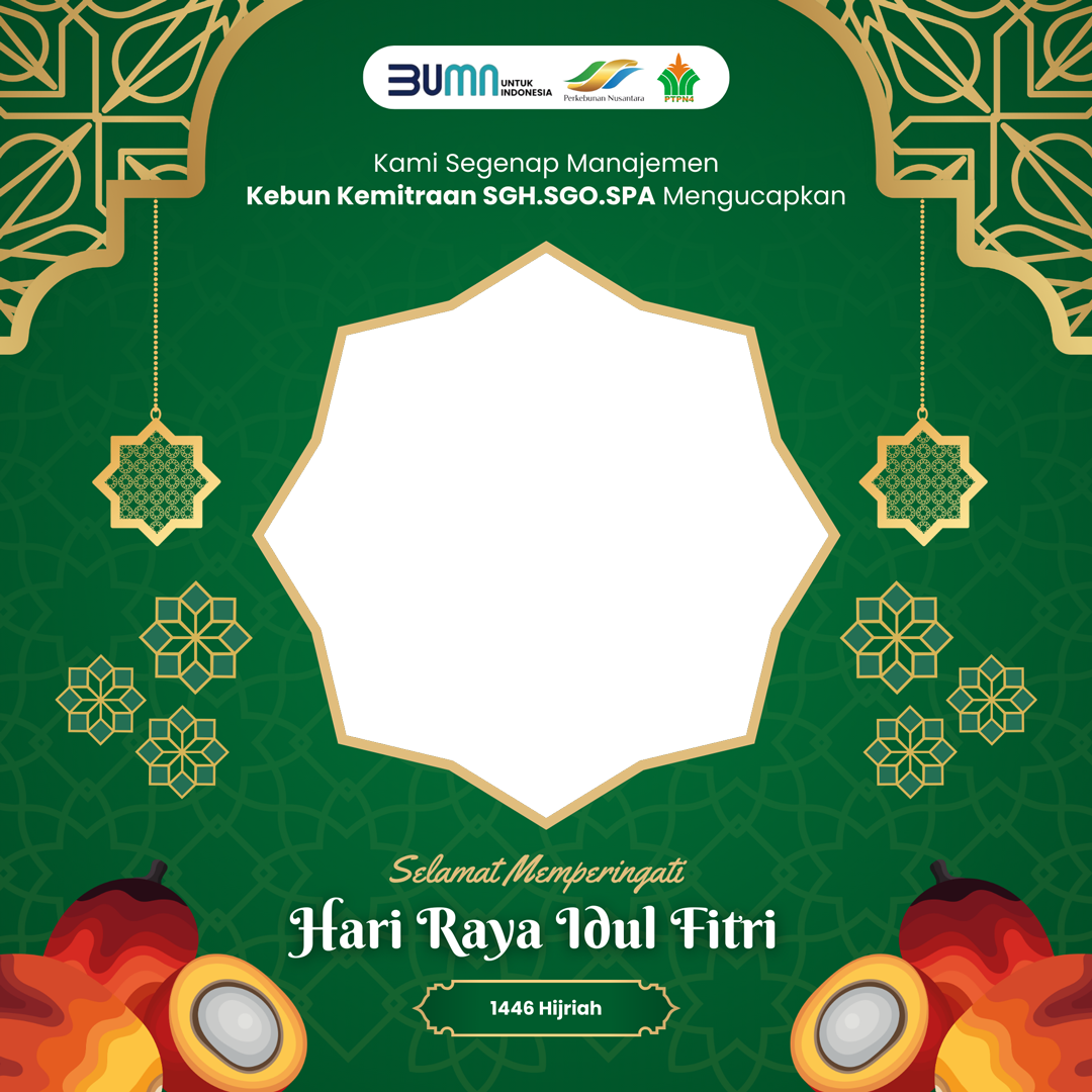 Kami Segenap Manajemen Kebun Kemitraan SGH.SGO.SPA Mengucapkan Selamat Hari Raya Idul Fitri 1446 Hijriah. Minal 'Aidinn wal Faizin, Mohon Maaf Lahir dan Batin.