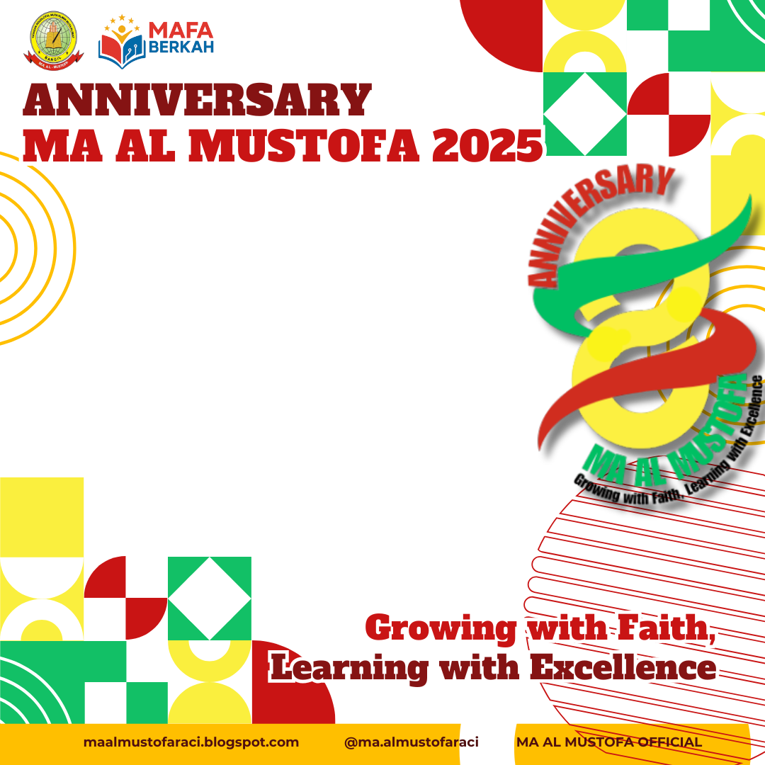 Merayakan 8 tahun perjalanan penuh berkah Madrasah Aliyah Al Mustofa. Di sini kami tidak hanya tumbuh dengan ilmu, tetapi juga dengan landasan iman yang kuat. Terima kasih untuk semua guru dan keluarga besar Al Mustofa. Selamat hari jadi yang ke-8! Semoga tetap konsisten dalam membina generasi excellence yang berakhlak mulia. Aamiin.