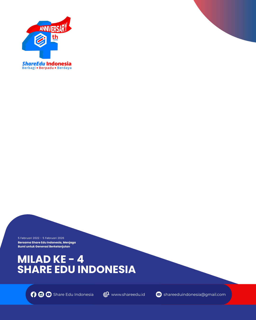 Rayakan Milad ke-4 Share Edu Indonesia! 🎉 Sudah 4 tahun Share Edu Indonesia hadir untuk berbagi ilmu, memperkuat kolaborasi, dan memberdayakan generasi 🌱✨