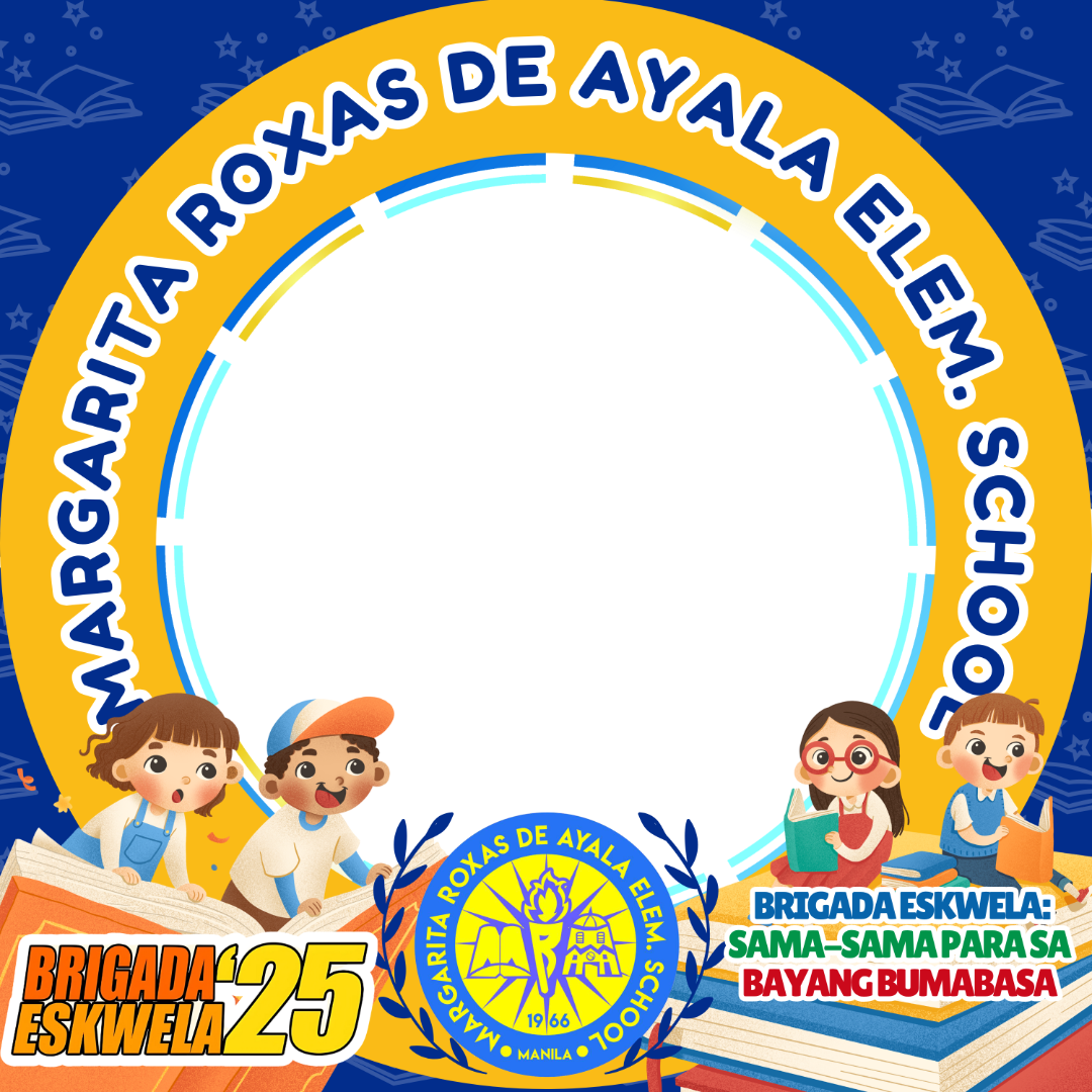 "Brigada Eskwela: Sama-Sama Para Sa Bayang Bumabasa Halina at makiisa para sa ligtas, maayos, at masayang balik-eskwela!"